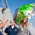 Het gevecht was begonnen. Al snel was ik volledig gedesoriënteerd. Omdat er vette drab tussen mijn oog en mijn bril in zat zag ik heel weinig. Mijn gehoorgang zat vol met slagroom, dus ik hoorde bijna niets meer, behalve af en toe een doffe plof als ik werd geraakt. Het oog begon zo enorm te prikken dat ik het wel dicht moest houden. Het is moeilijk mikken als je geen diepte kunt zien. Daarnaast was het zeil spekglad geworden. Uiteindelijk stond ik als een verschrikkelijke slagroomman in een winters landschap van slagroomsneeuw.